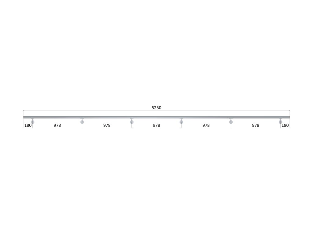 madlo 5250mm /brúsená nerez K320 /AISI316 set: 6ks úchyt, madlo ø 42.4mm s ukončením