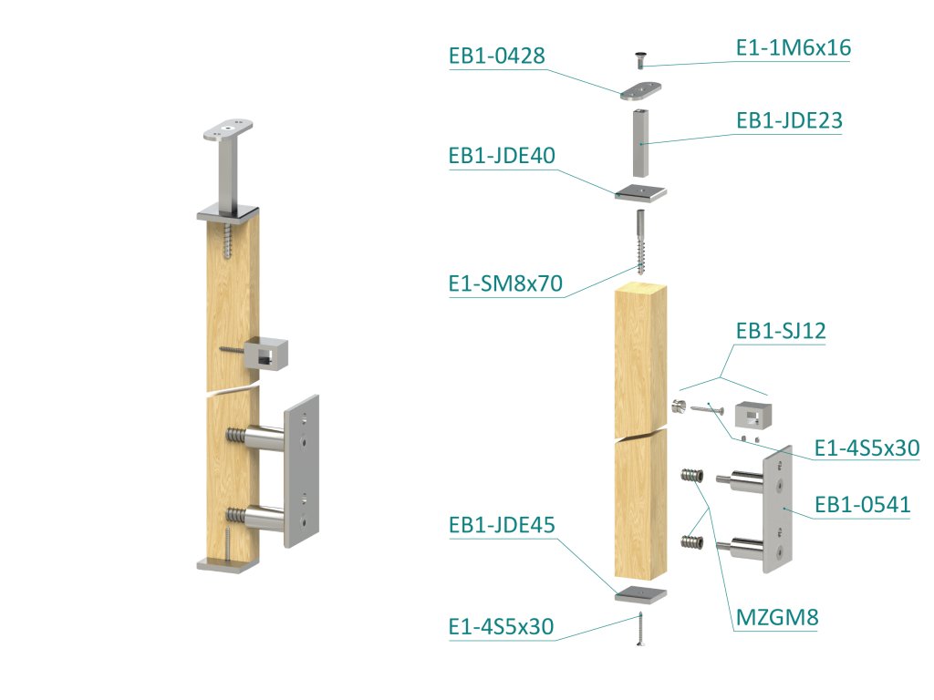 drevený stĺp, bočné kotvenie, 5 radový priechodný, vnútorný, vrch pevný (40x40mm), materiál: buk, brúsený povrch bez náteruDodatočné parametre