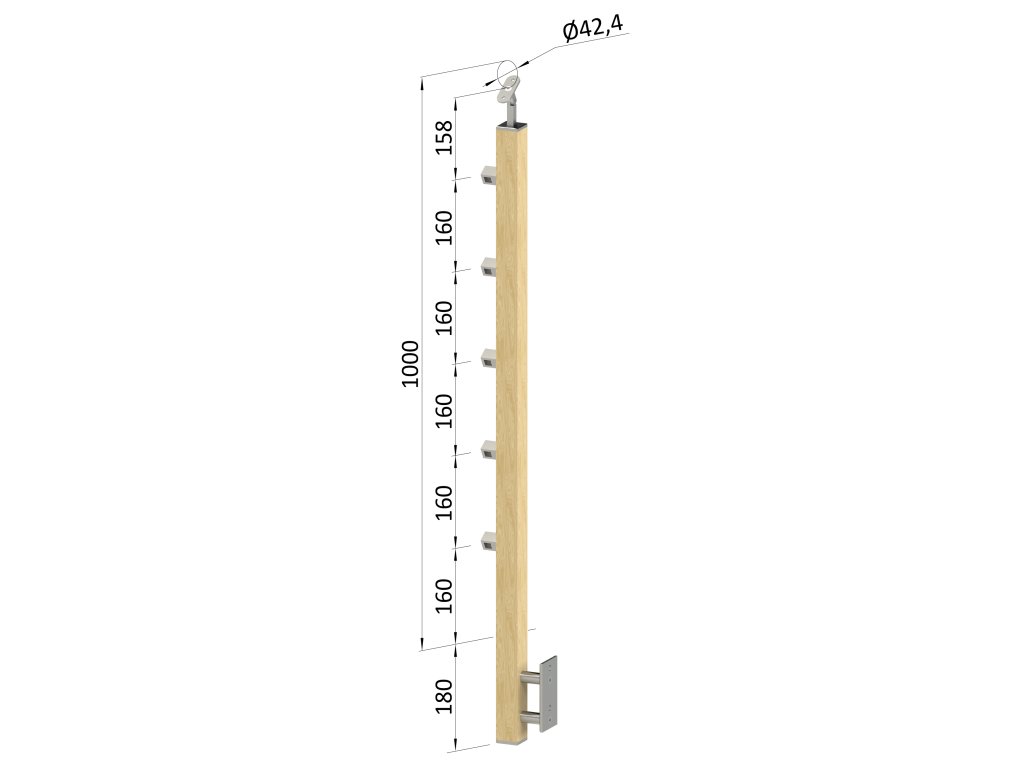 drevený stĺp, bočné kotvenie, 5 radový priechodný, vonkajší, vrch nastaviteľný (40x40mm), materiál: buk, brúsený povrch bez náteruDodatočné parametre