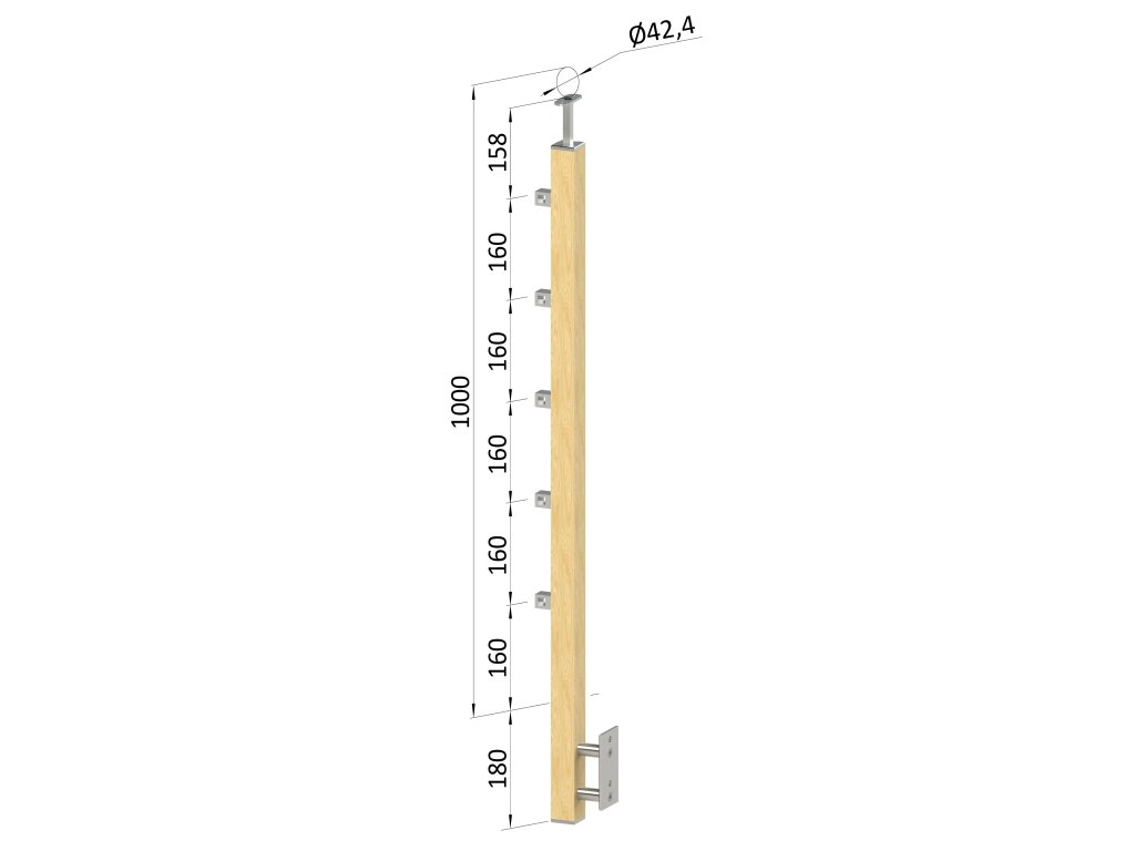 drevený stĺp, bočné kotvenie, 5 radový, priechodný, vonkajší, vrch pevný, (40x40mm), materiál: buk, brúsený povrch s náterom BORI (bezfarebný)Dodatočné parametre