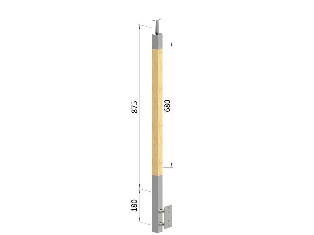 drevený stĺp, bočné kotvenie, bez výplne, vrch pevný (40x40mm), materiál: buk, brúsený povrch bez náteru