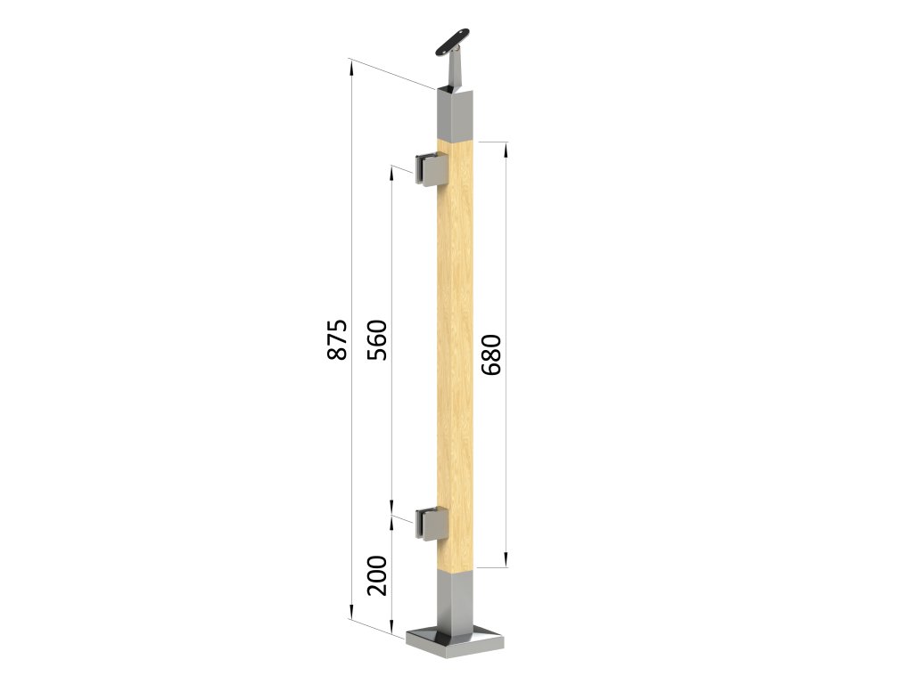 drevený stĺp, vrchné kotvenie, výplň: sklo, ľavý, vrch nastaviteľný (40x40mm), materiál: buk, brúsený povrch s náterom BORI (bezfarebný)