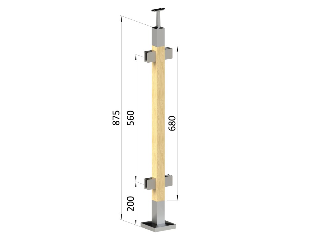 drevený stĺp, vrchné kotvenie, výplň: sklo, priechodný, vrch pevný (40x40mm), materiál: buk, brúsený povrch s náterom BORI (bezfarebný)