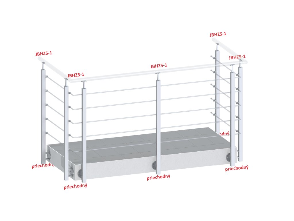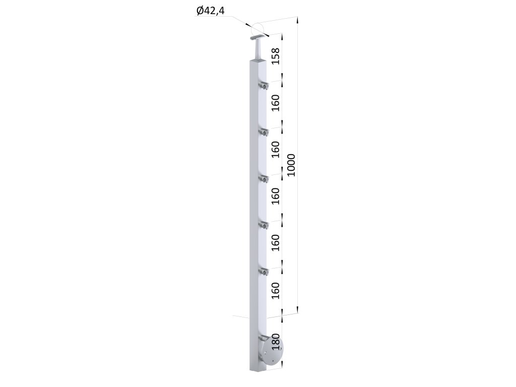 nerezový stĺp, bočné kotvenie, 5 radový priechodný, vnútorný, vrch pevný(40x40mm), brúsená nerez K320 /AISI304Dodatočné parametre