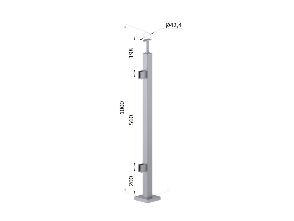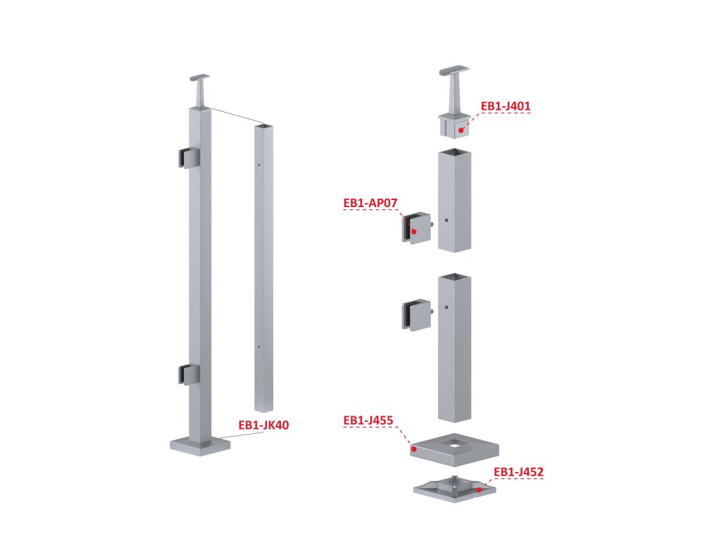 nerezový stĺp, vrchné kotvenie, výplň: sklo, ľavý, vrch pevný (40x40mm), brúsená nerez K320 /AISI304