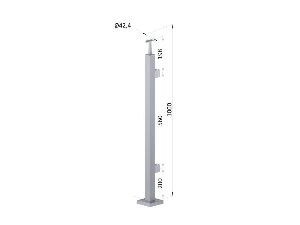 nerezový stĺp, vrchné kotvenie, výplň: sklo, pravý, vrch pevný (40x40mm), brúsená nerez K320 /AISI304