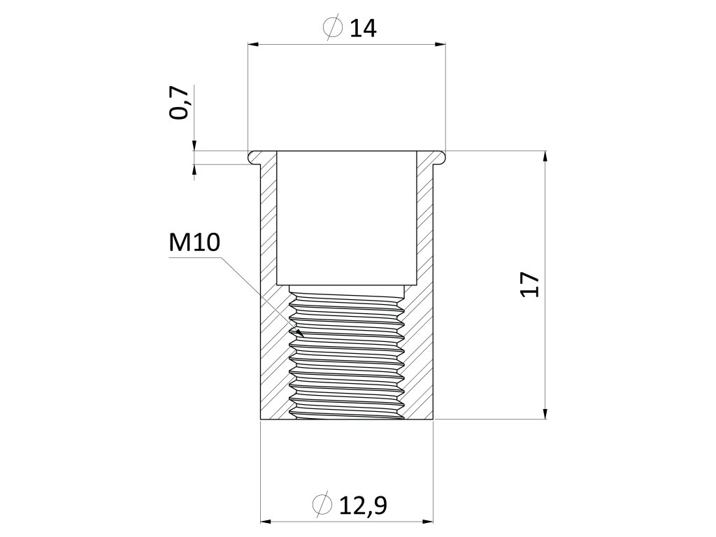 nitovacia matica hliníková M10/1.0-3.0/ mikro hlava, hladký driek, VZ L = 17.7mm