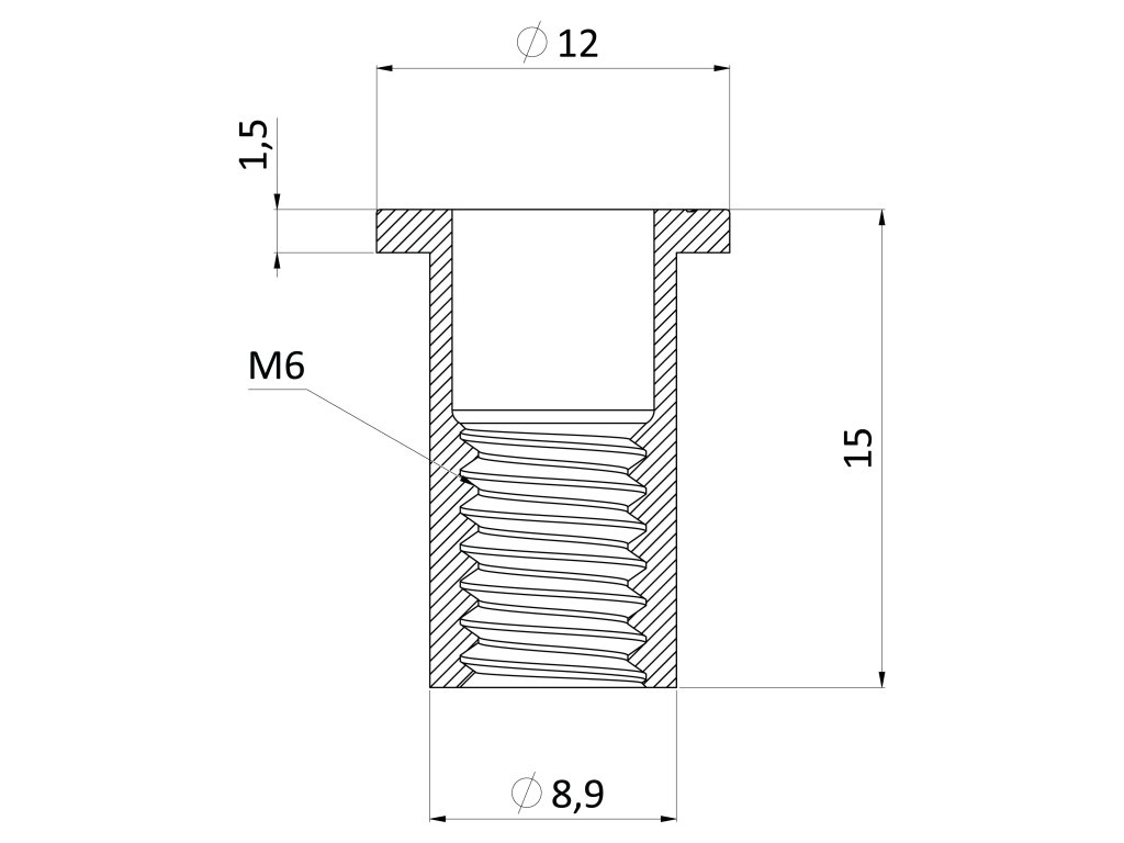nitovacia matica hliníková M6/0.5-2.5/ plochá hlava, hladký driek, VZ L = 15mm