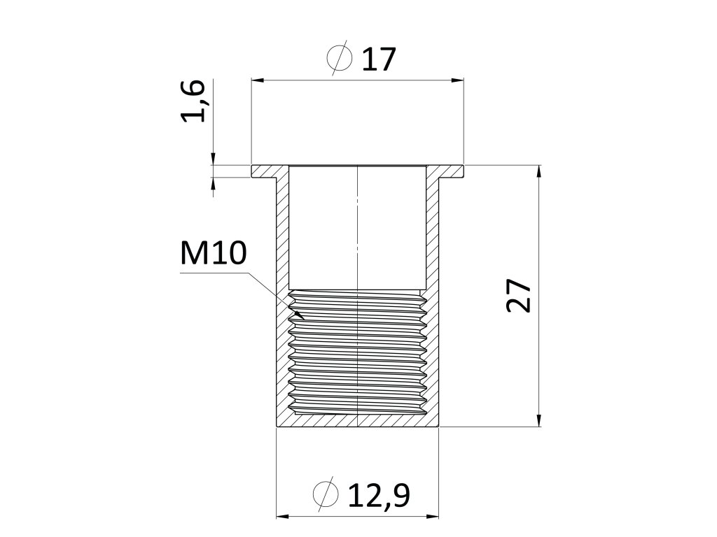 nitovacia matica M10/1.0-4.0/ plochá hlava, rýhovaný driek, uzavretá, VZ L = 27mm