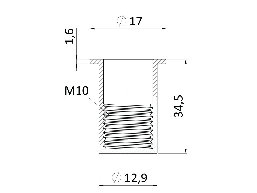 nitovacia matica M10/1.0-4.0/ plochá hlava, rýhovaný driek, uzavretá, VZ L = 34.5mm