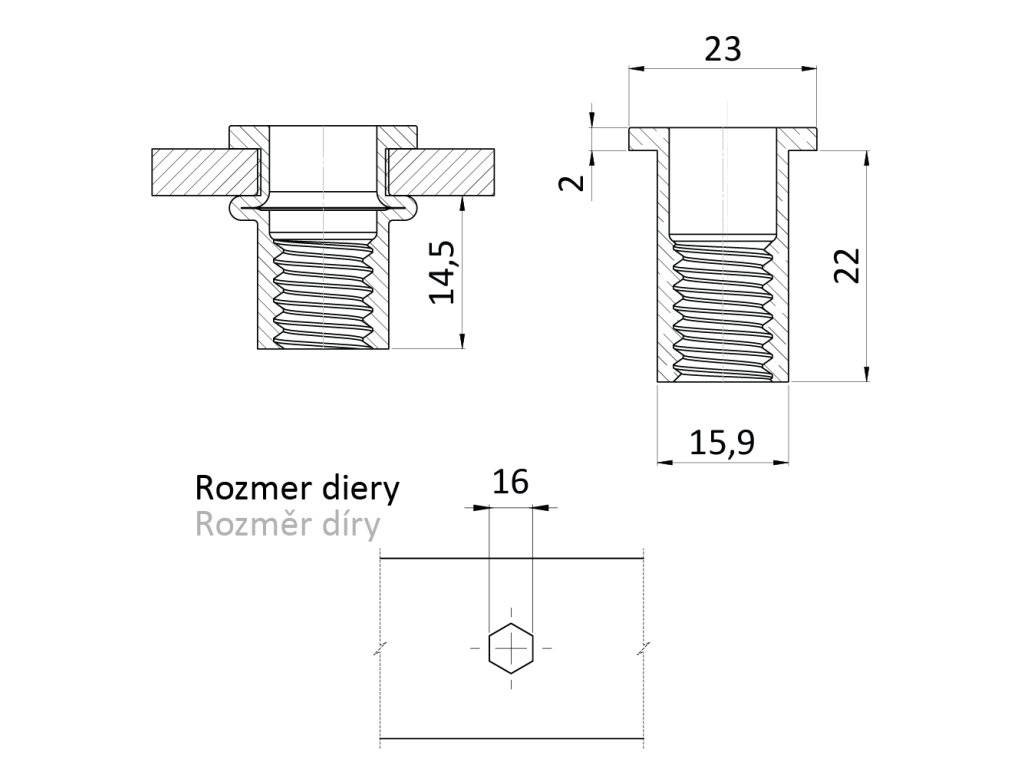 nitovacia matica M12/1.0-4.0/ plochá hlava, hex, L=22mm