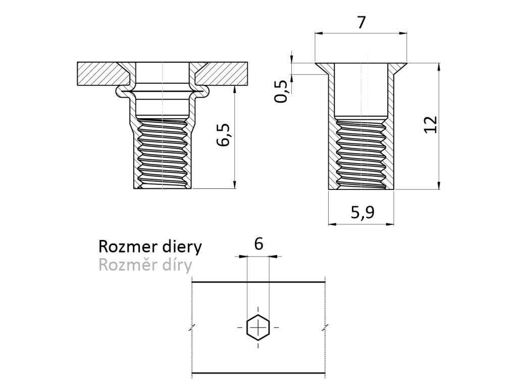 nitovacia matica M4/0.3-1.5/ mikro hlava, semi-hex, L=12mm