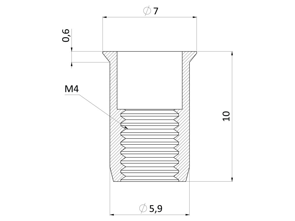 nitovacia matica M4/0.3-2.0/ mikro hlava, rýhovaný driek, VZ L = 10.6mm