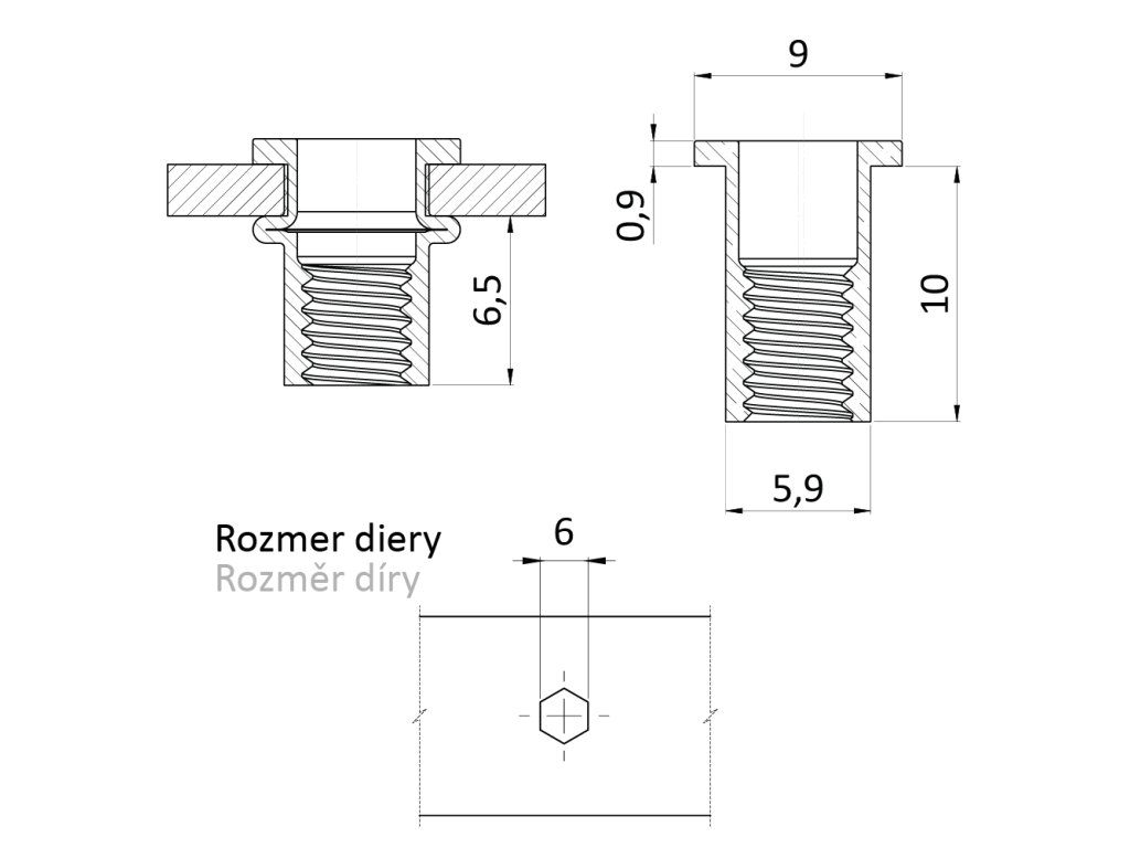 nitovacia matica M4/0.3-2.0/ plochá hlava, hex, L=10mm