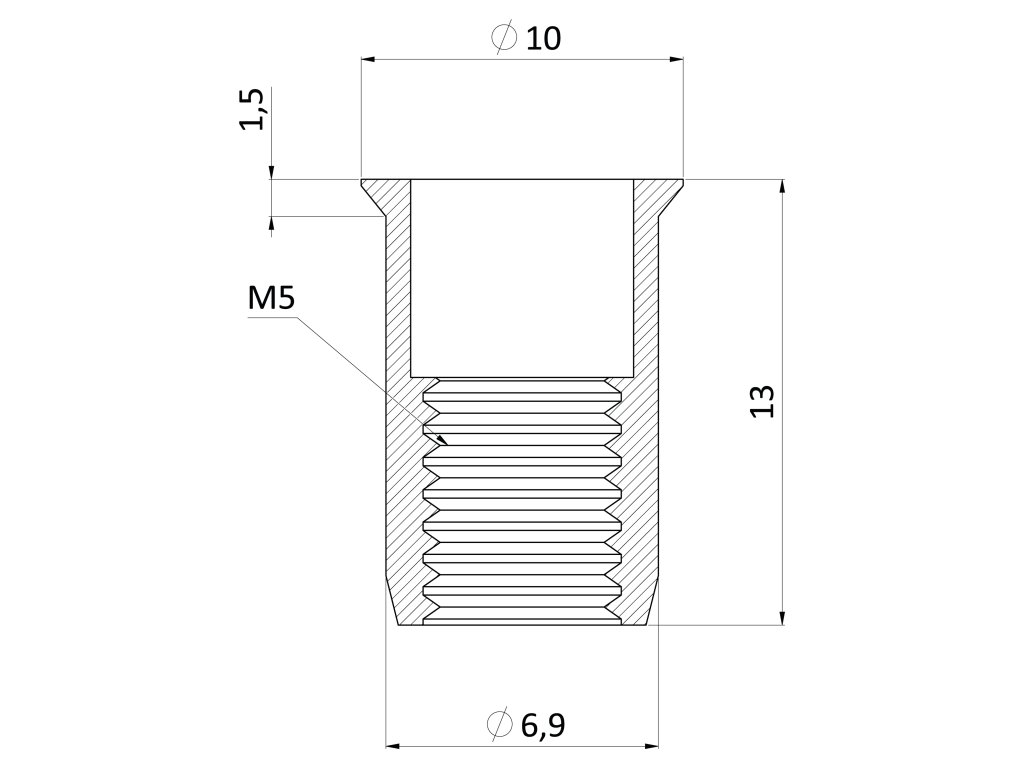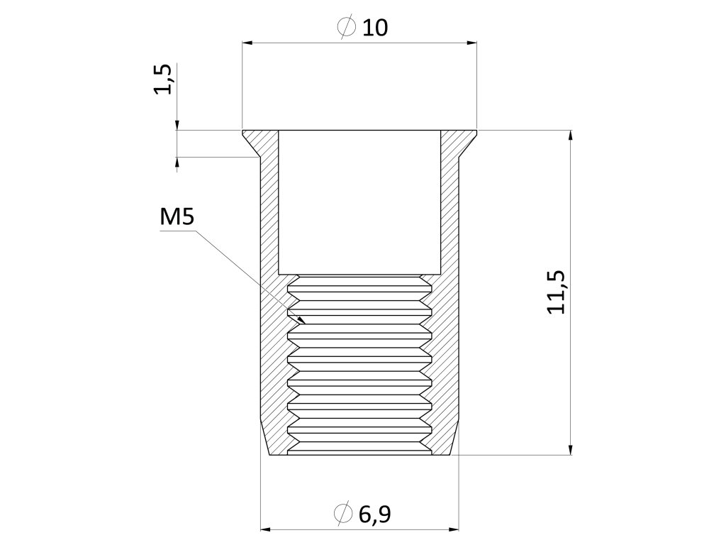 nitovacia matica M5 so zápustnou hlavou, ryhovaný driek, oceľ-biely pozinkDodatočné parametre