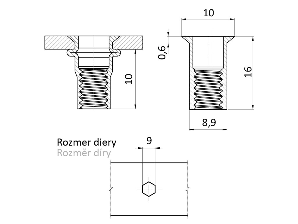 nitovacia matica M6/0.3-2.5/ mikro hlava, semi-hex, L=16mm