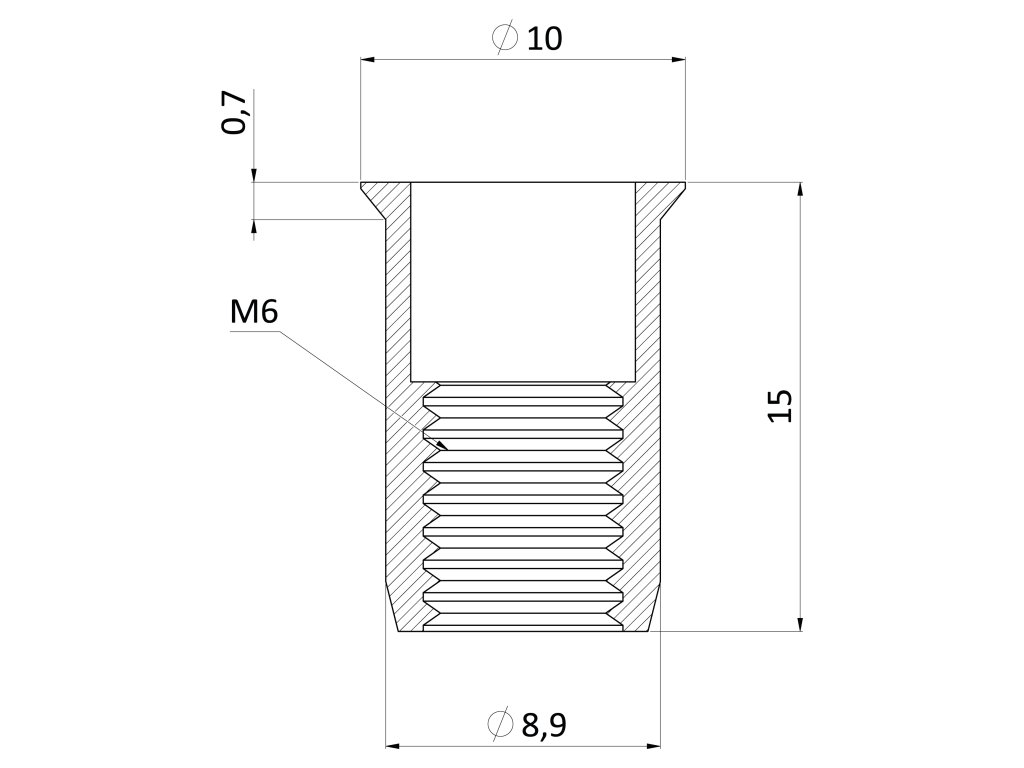 nitovacia matica M6/0.5-3.0/ mikro hlava, rýhovaný driek, VZ L = 14mm