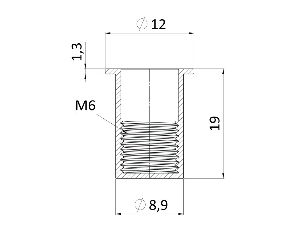 nitovacia matica M6/0.5-3.0/ plochá hlava, rýhovaný driek, uzavretá, VZ L = 19,2mm