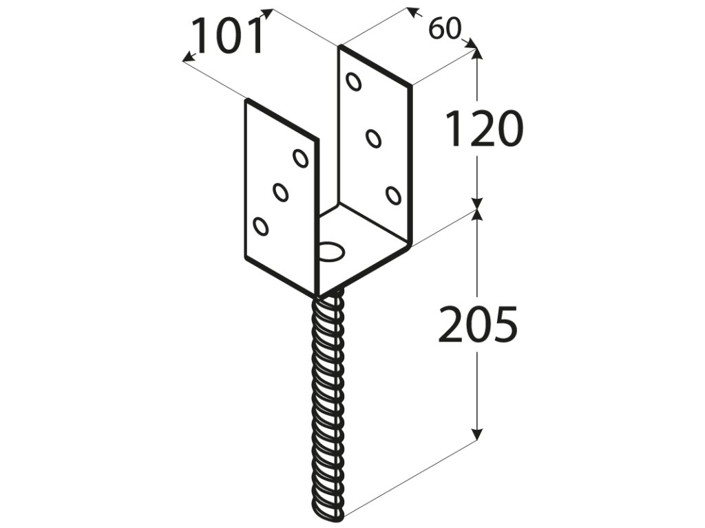 Pätka stĺpika U 101x120x324mm, 4mm žiarový pozink, priemer nohy 18mm, počet dier s priemerom 11mm-6ks