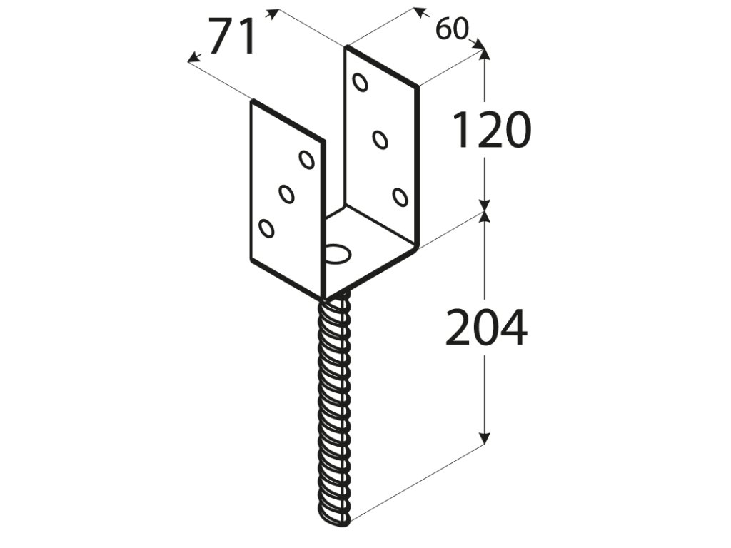 Pätka stĺpika U 71x120x324mm, 4mm žiarový pozink, priemer nohy 18mm, počet dier s priemerom 11mm-6ks