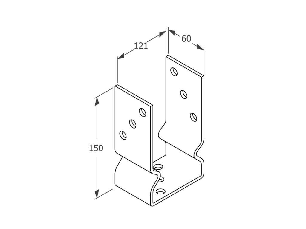 Pätka stĺpiku 121x60x150mm, 4mm žiarový pozink, počet dier s priemerom 11mm-9ks