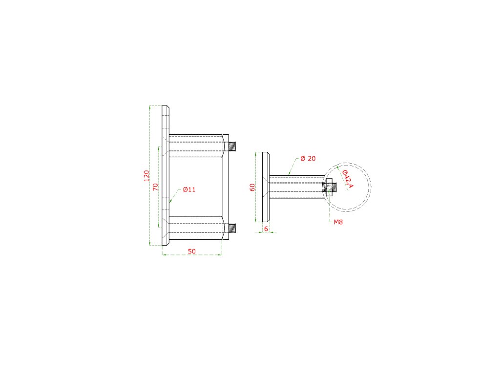 úchyt na bočné kotvenie stĺpu ø 42.4mm, (kotviaca platňa 120x60x10mm), brúsená nerez K320 /AISI304Dodatočné parametre