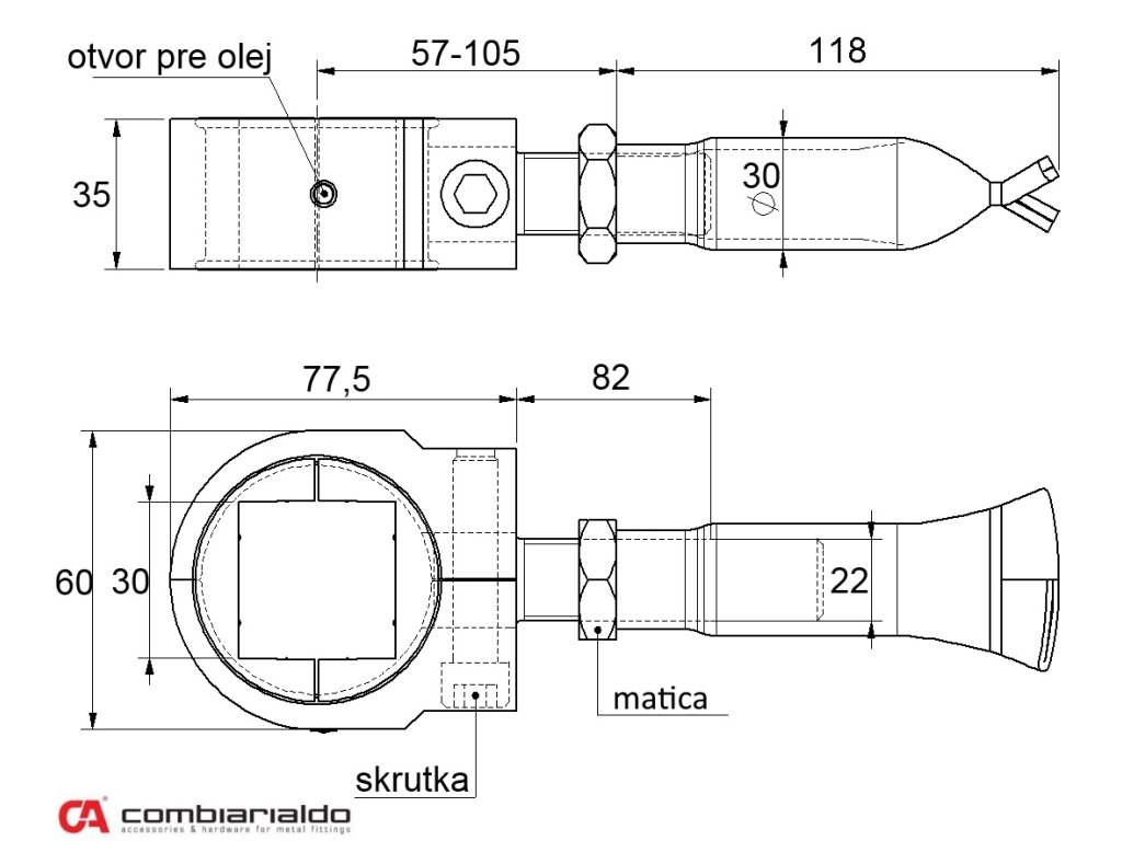 záves M22 na upnutie štvorhranu 30x30mm, na chemické kotvenie