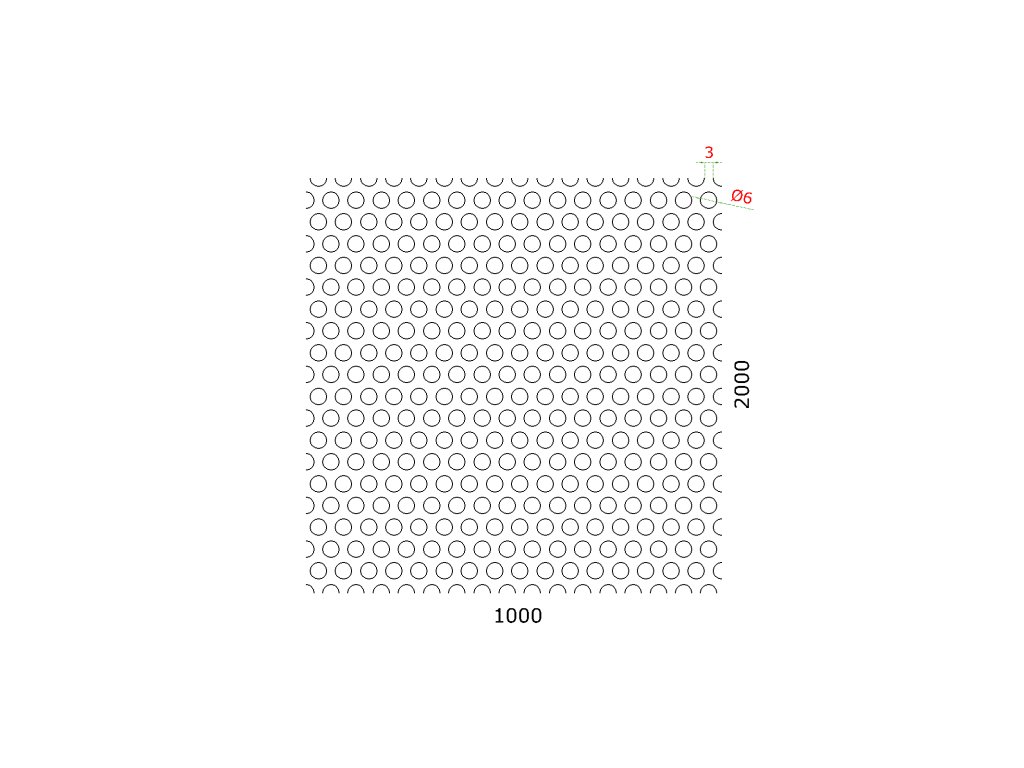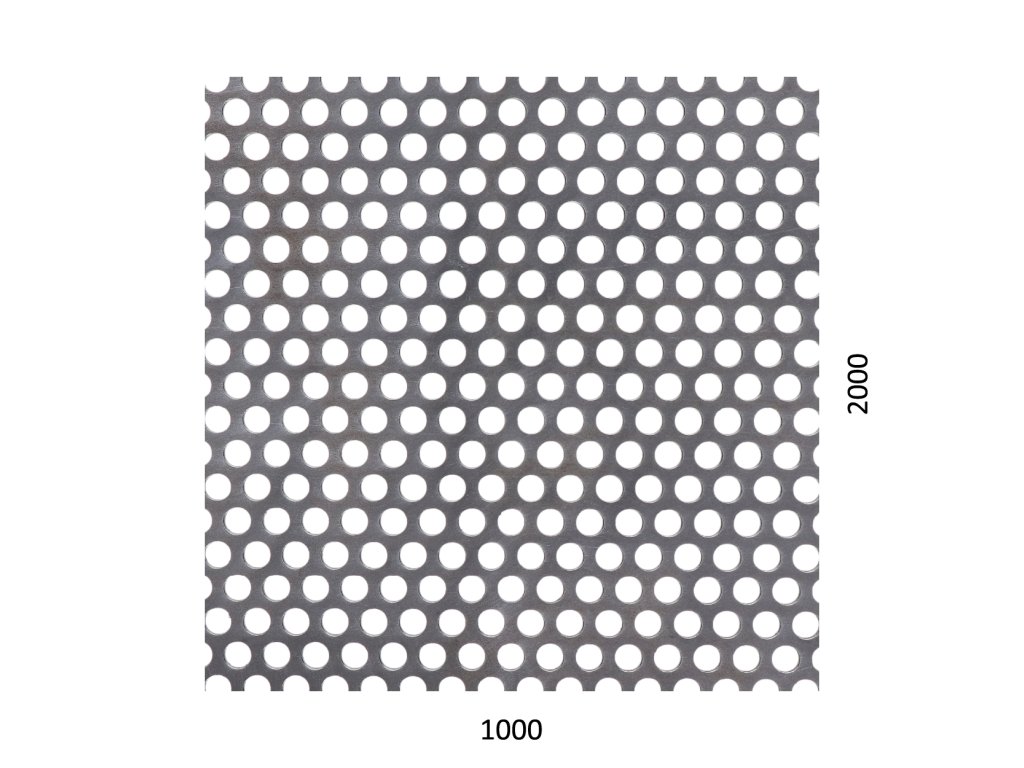 dierovaný plech kruhový presadený Fe, otvor: ø 6.0mm, rozteč: 9.0mm, (2000x1000x1.5mm)