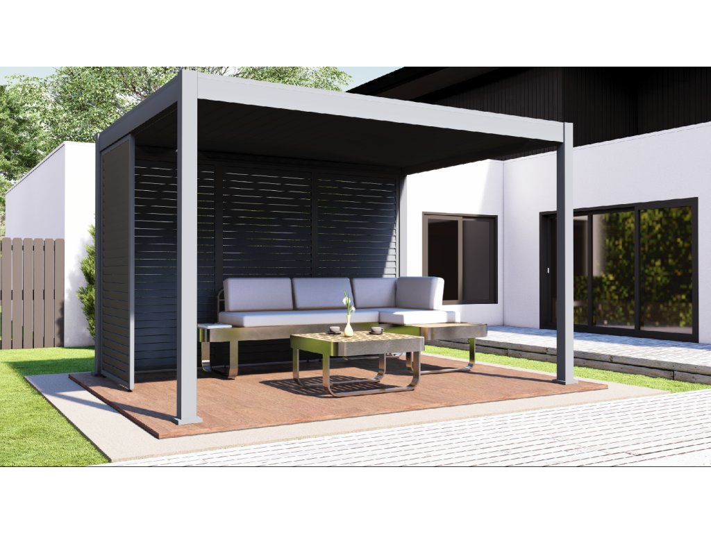 Pre zvýšenie komfortu a súkromia ponúkame doplnkový panel s horizontálnymi fixnými lamelami, určený na bočné alebo čelné zatienenie bioklimatických pergol. Tento panel zaisťuje nielen funkčnú ochranu pred slnkom či vetrom, ale zároveň dotvára moderný vzhľad celého exteriéru.Kvalitná konštrukcia a dizajn: