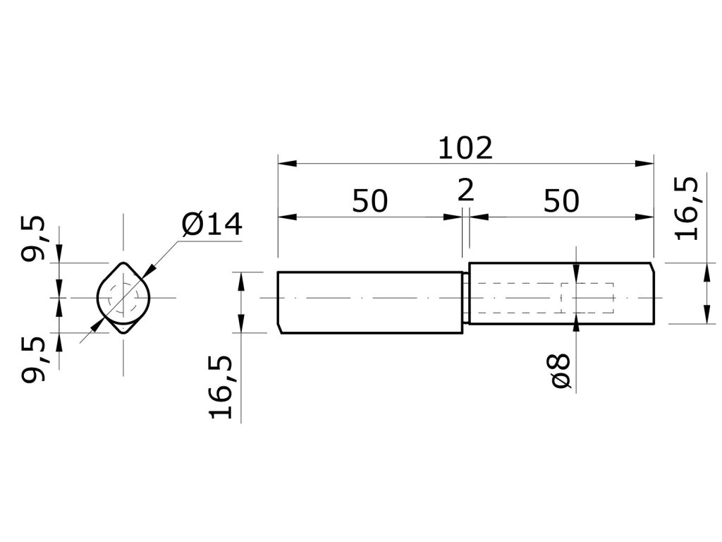 pánt dvojdielny 102x14mm, pozinkovaný tŕňDodatočné parametre