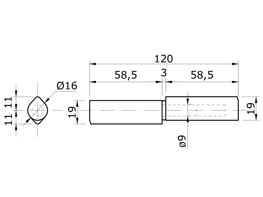 pánt dvojdielny 120x16mm, pozinkovaný tŕňDodatočné parametre