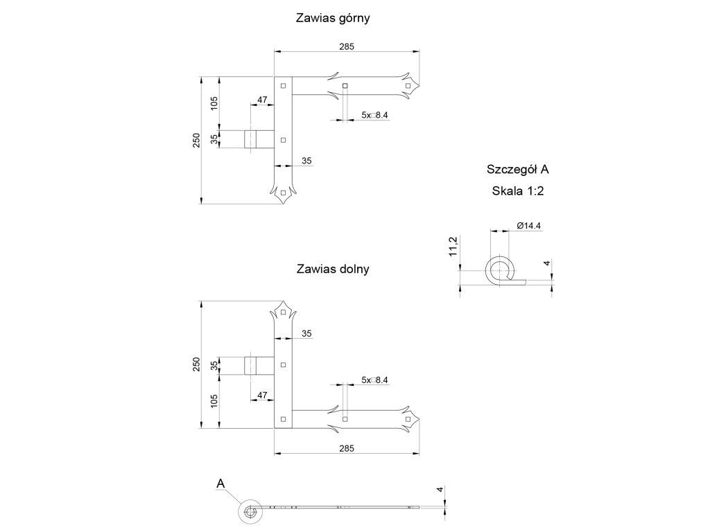 kovanie ozdobné, 250x290mm, 35x4mm,otvor pre čap ø 14mm, povrch čierny lak