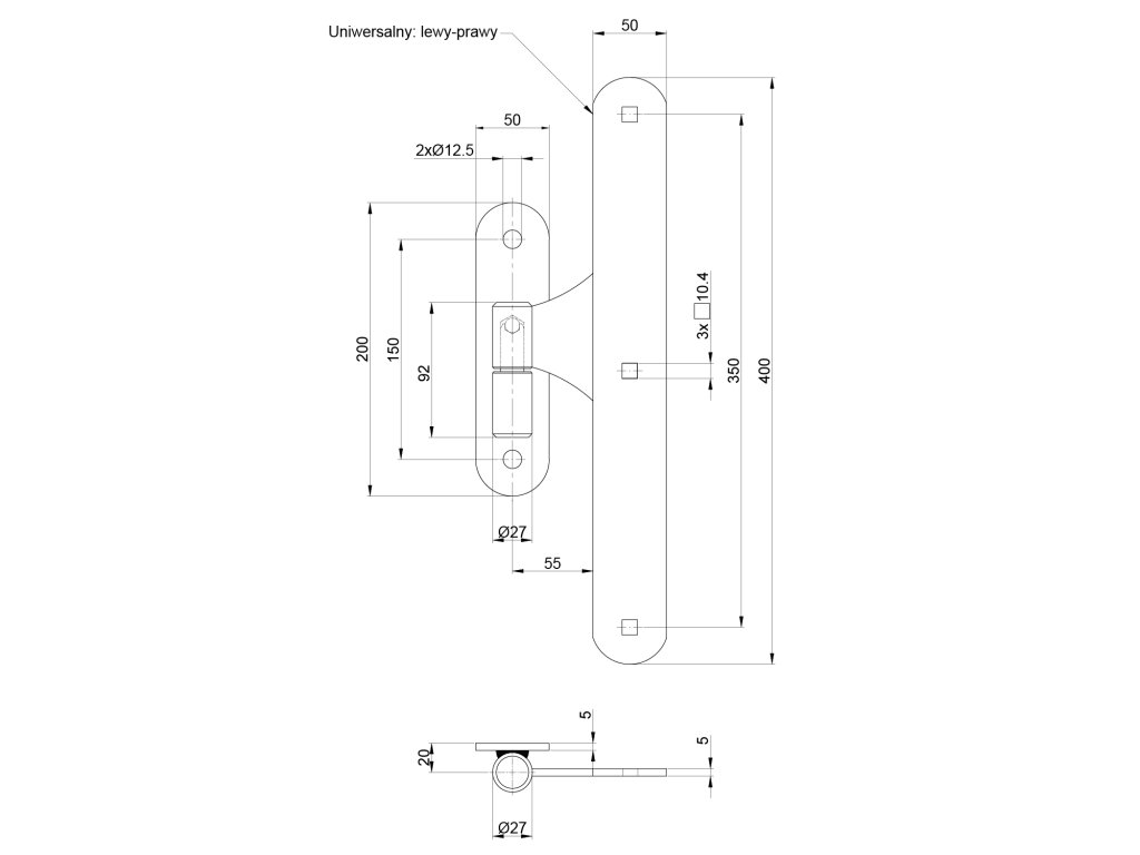pánt s kovaním 400x50x5 mm, fi.27mm, čiernyDodatočné parametre