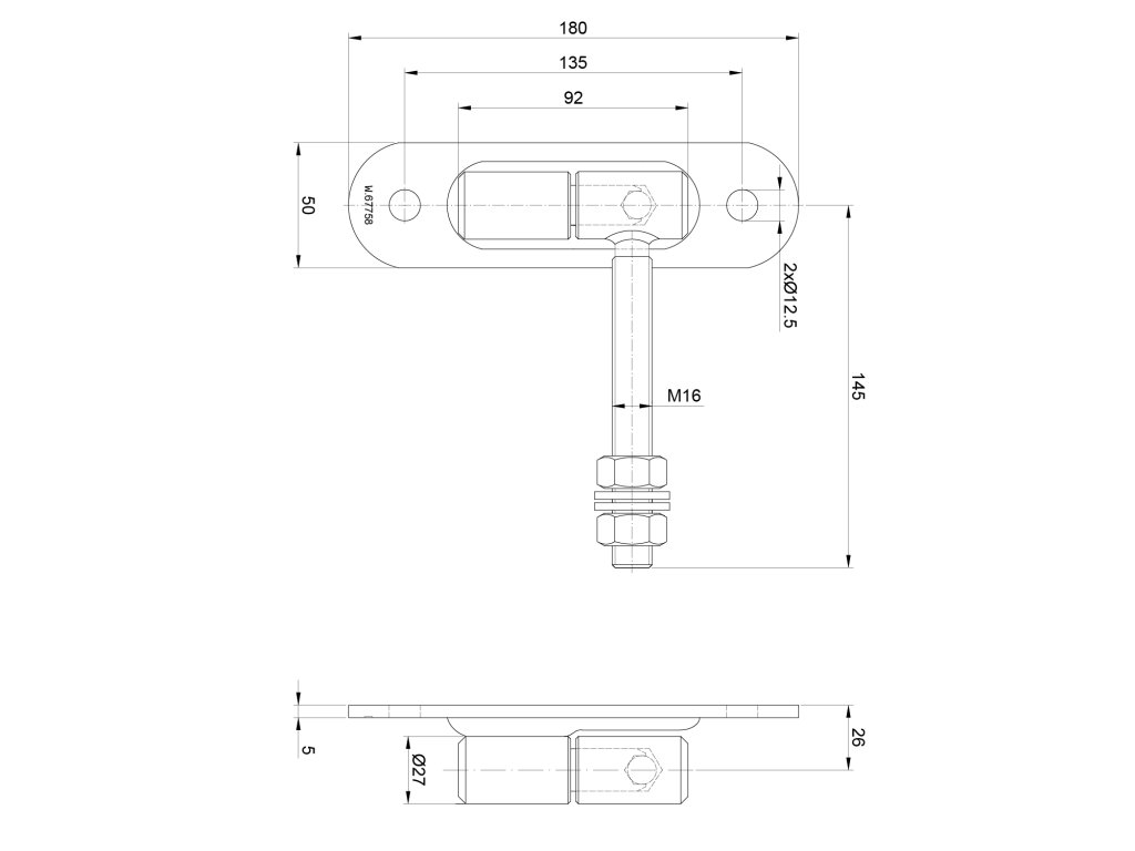 záves nastaviteľný, ø 27mm, M16, zinkovaný