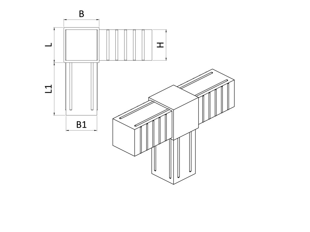 Plastová spojka - T-kus vhodný do profilu veľkosti 25x25x2 mm