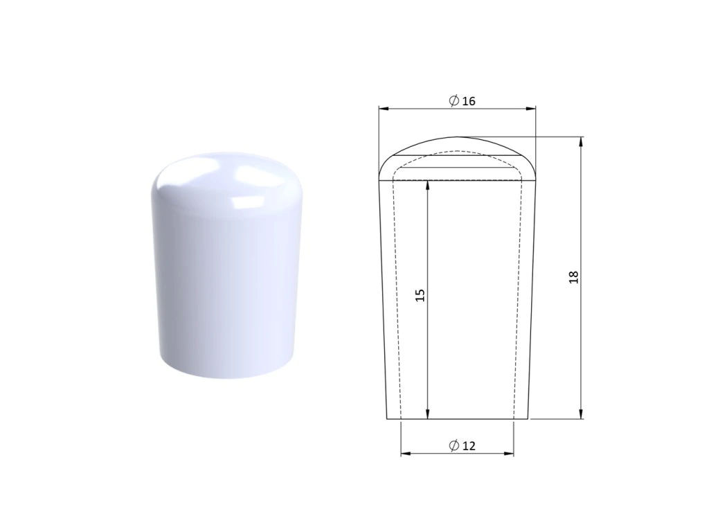 Vonkajšia krytka PVC ø 16 x 18 mm, otvor 12 x 15 mm, biela