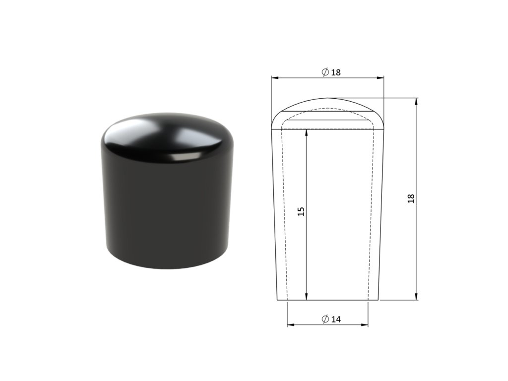 Vonkajšia krytka PVC ø 18 x 18 mm, otvor 14 x 15 mm, čierna