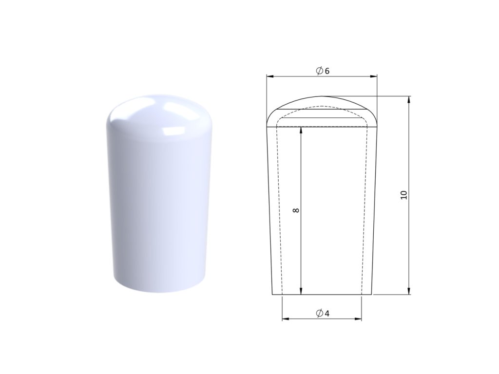 Vonkajšia krytka PVC ø 6 x 10 mm, otvor 4 x 8 mm, biela