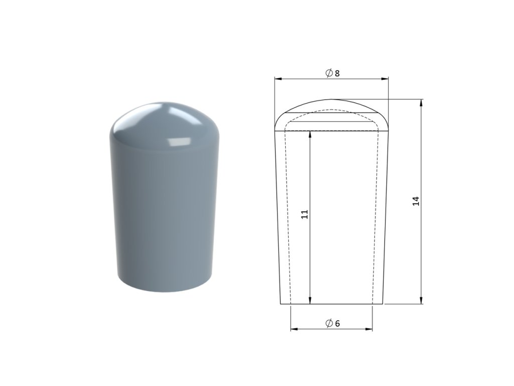 Vonkajšia krytka PVC ø 8 x 14 mm, otvor 6 x 11 mm, sivá