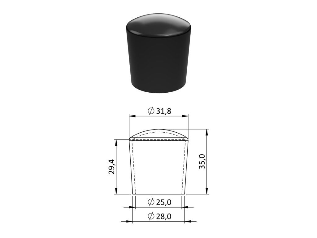 Vonkajšia PVC krytka ø 31,8 x 35 mm, otvor 25 mm, čierna