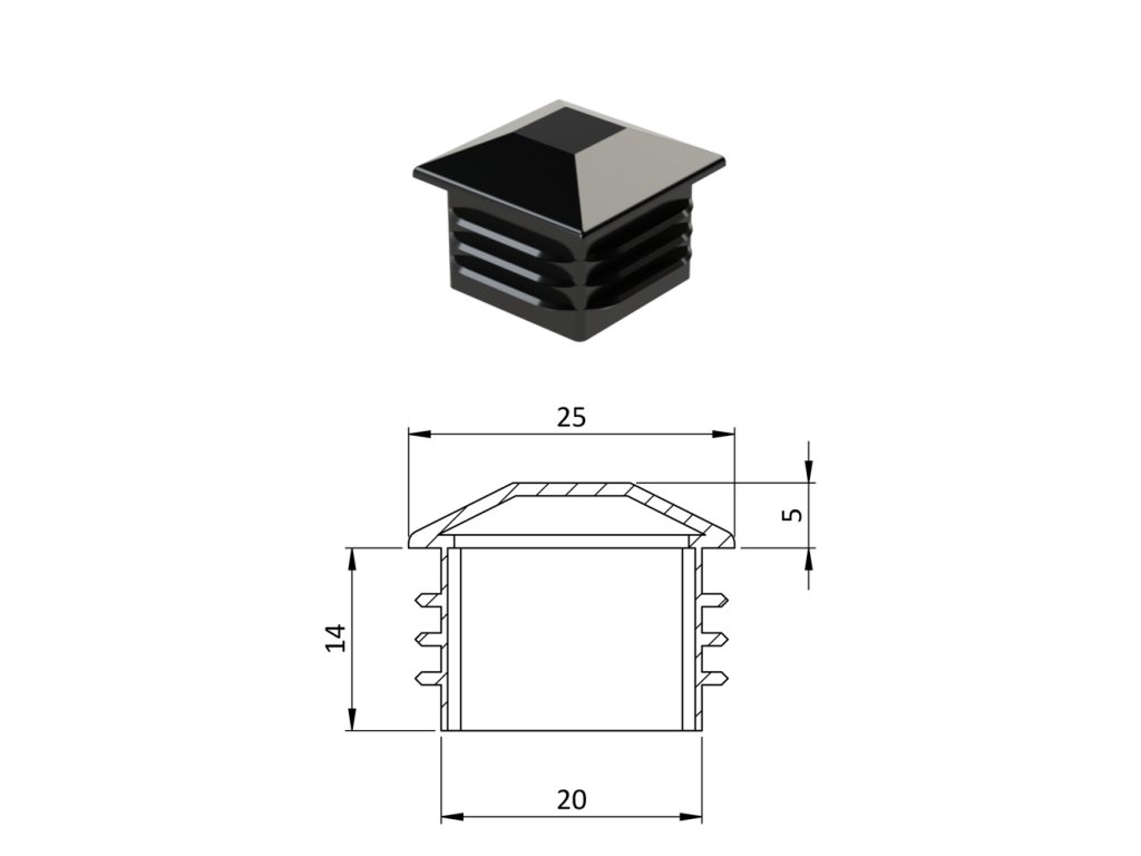 Krytka plastová so strieškou 25 x 25 mm, čierna