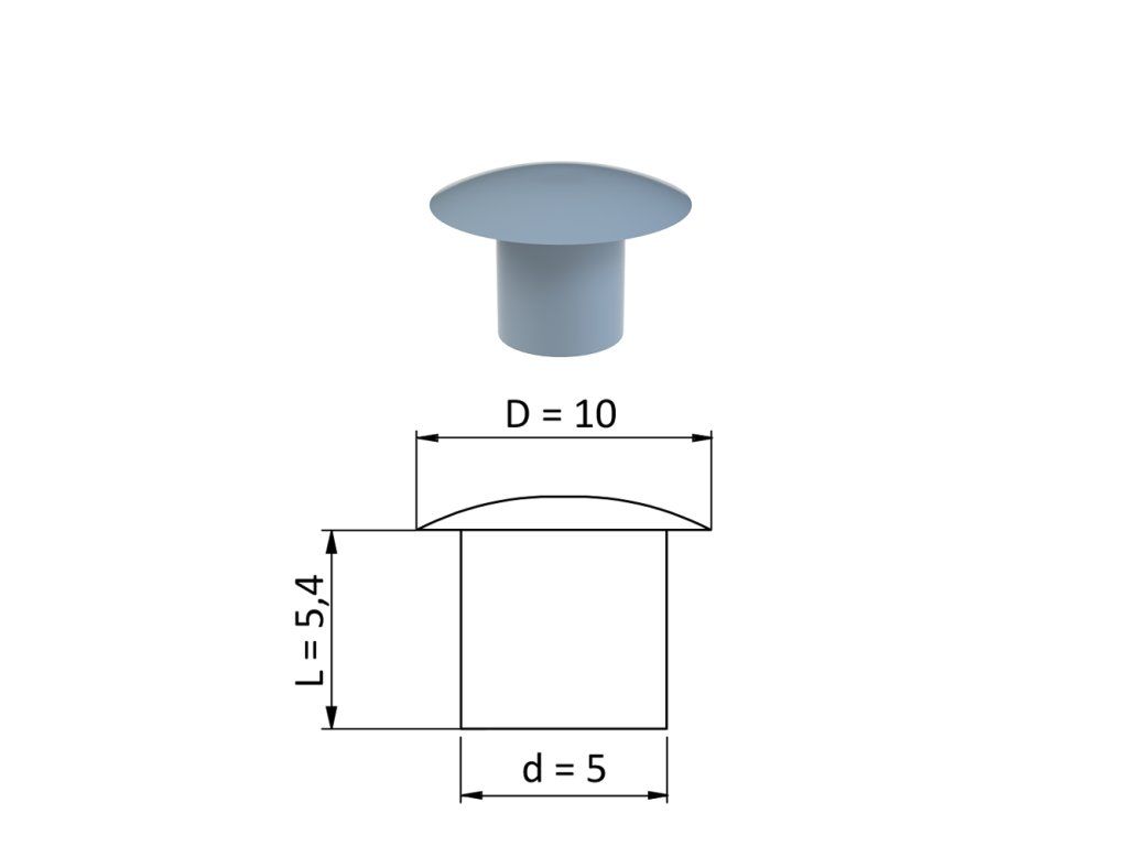 Vnútorná krytka guľatá ø 10 mm, otvor ø 5 mm, sivá, plast
