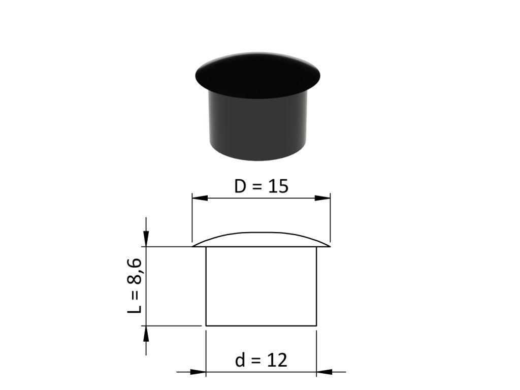 Vnútorná krytka guľatá ø 15 mm, otvor ø 12 mm, čierna, plast