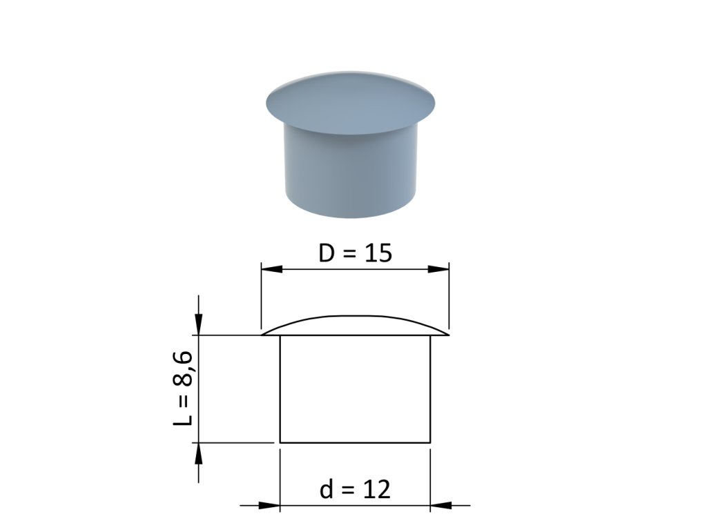 Vnútorná krytka guľatá ø 15 mm, otvor ø 12 mm, sivá, plast