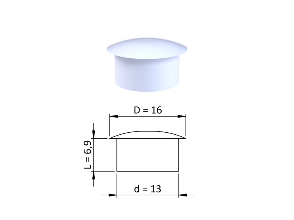 Vnútorná krytka guľatá ø 16 mm, otvor ø 13 mm, biela, plast