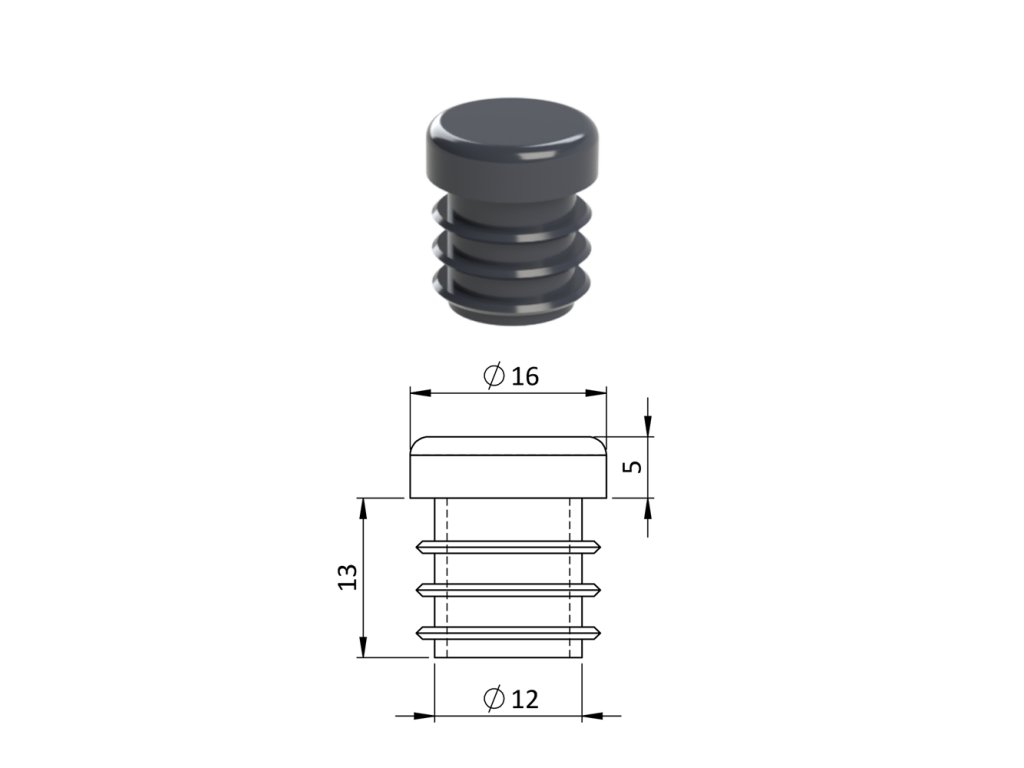 Vnútorná krytka guľatá ø 16 mm, plastová, antracit