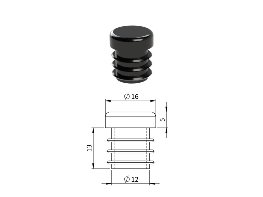 Vnútorná krytka guľatá ø 16 mm, plastová, čierna