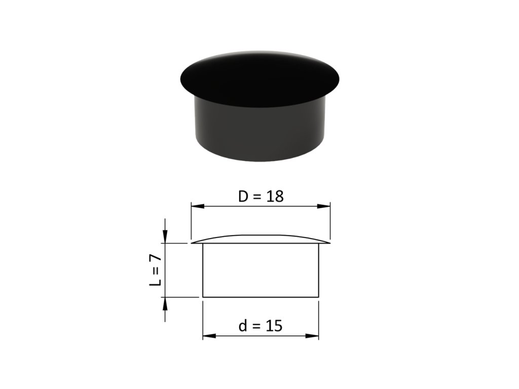 Vnútorná krytka guľatá ø 18 mm, otvor ø 15 mm, čierna, plast