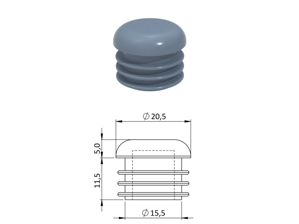 Vnútorná krytka guľatá ø 20,5 mm, plastová, sivá