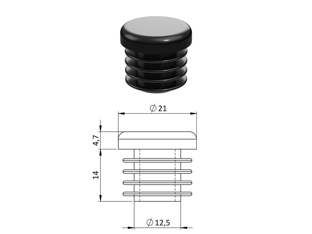 Vnútorná krytka guľatá ø 21 mm, plastová, čierna